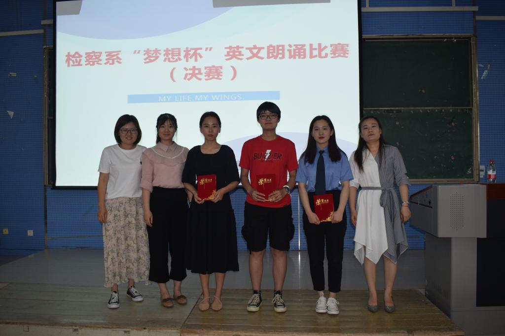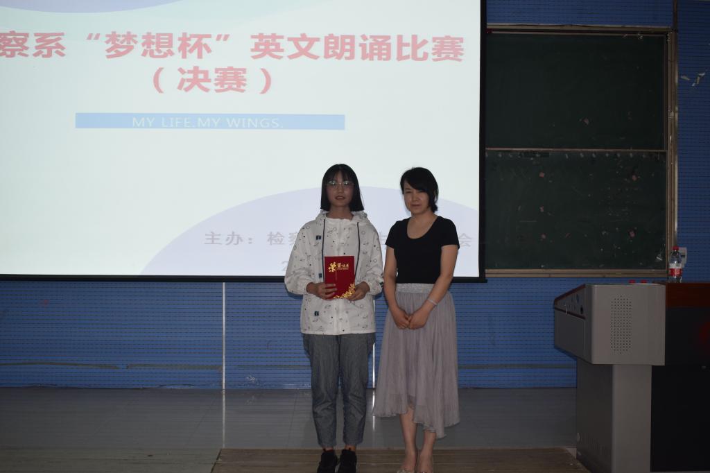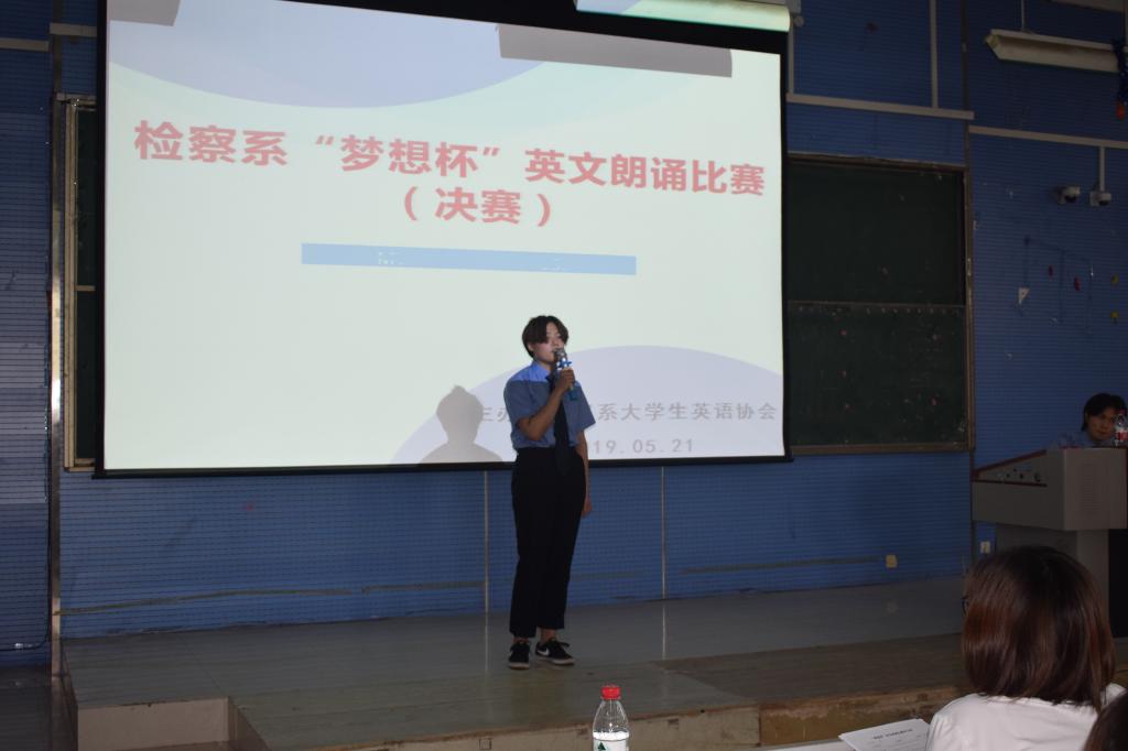 为培养学生良好的英语阅读、朗读习惯,帮助学生形成标准的语音和优美的语调,提高同学们对英文学习的热情,5月21日,检察系大学生英语协会在2301教室举行“梦想杯”英语朗诵比赛。检察系教务科科长时瑞燕、检察系大学生英语协会负责人冯晓燕等老师担任评委。