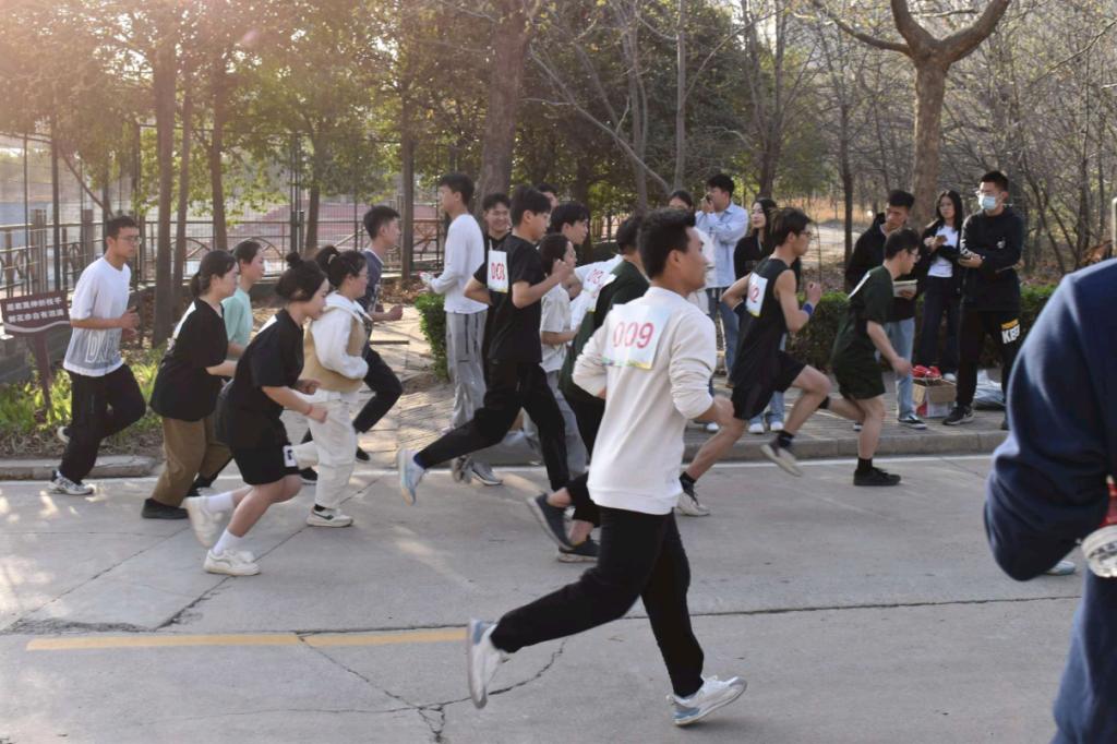 本次长跑比赛分为男子4千米和女子3千米两个赛项。赛前,团学干部们在跑道沿途设置补给点,细心检查跑道情况,核实参赛人数,提醒大家注意事项,而参赛选手们则互相加油打气,蹦跳热身,蓄势待发。